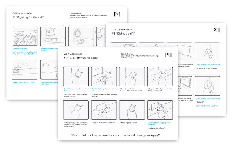Spent several nights drawing various storyboards rapidly to let the ideas just flow. We wanted to come up with comedy video series that was funny and could keep going and going until we ran out of ideas or budget. Good news is that I am an endless pool of some really funny and strange ideas. Although my 9-year-old son was making fun of my wolf drawings.